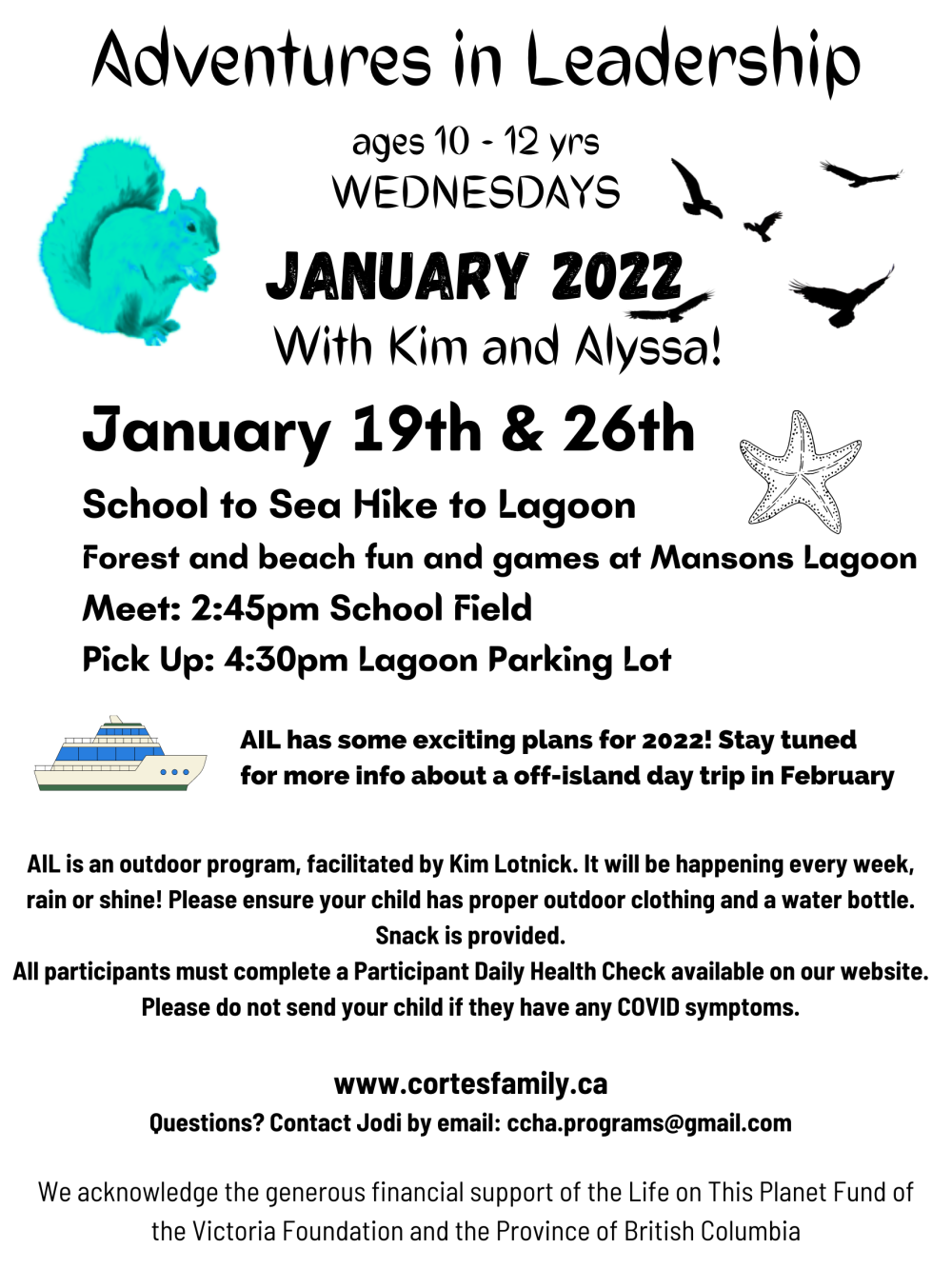 CCHA Youth Programs are drop-in, free of charge, extracurricular activity programs delivered during the school year. All children and youth who live on Cortes Island are welcome to attend the program for their age group.
