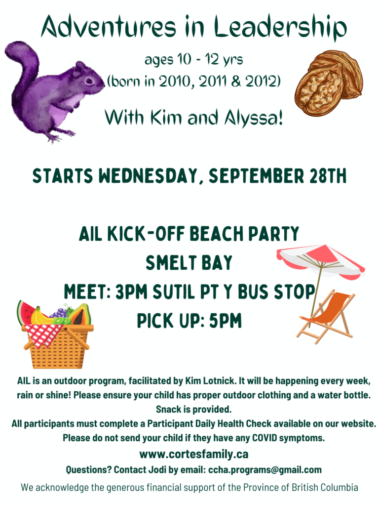CCHA Youth Programs are drop-in, free of charge, extracurricular activity programs delivered during the school year. All children and youth who live on Cortes Island are welcome to attend the program for their age group.