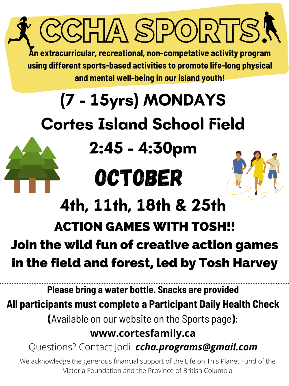CCHA Sports (7 – 15yrs) OCTOBER 2021 Schedule