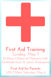 Saturday, May 6 – 2-hr non-certificate session for parents, childcare (by RSVP) will be available.