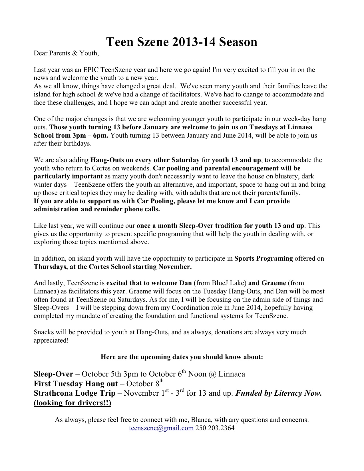 • FYI Families – Our Afterschool Programs will begin on September 22nd.